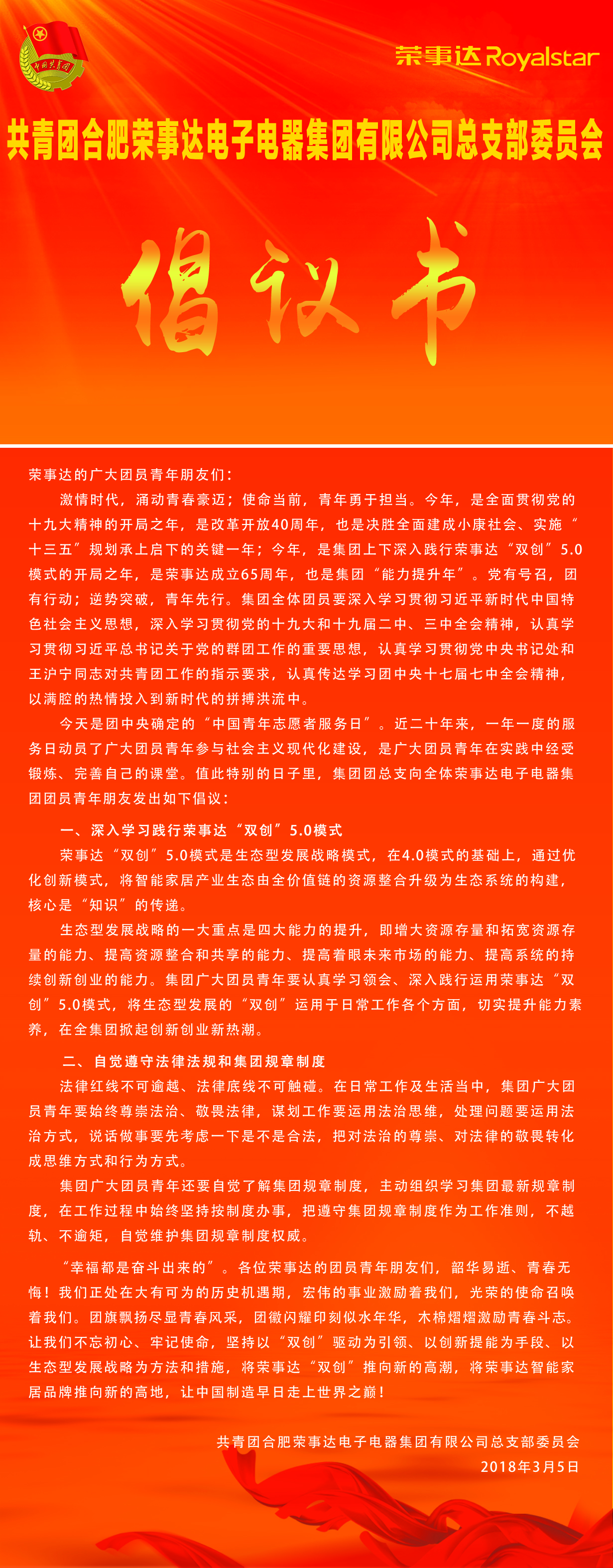 共青团合肥荣事达电子电器集团有限公司总支部委员会倡议书