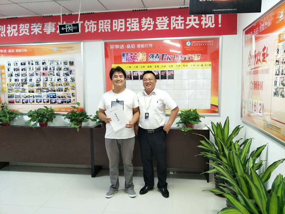 热烈祝贺吴总签约荣事达灯饰照明