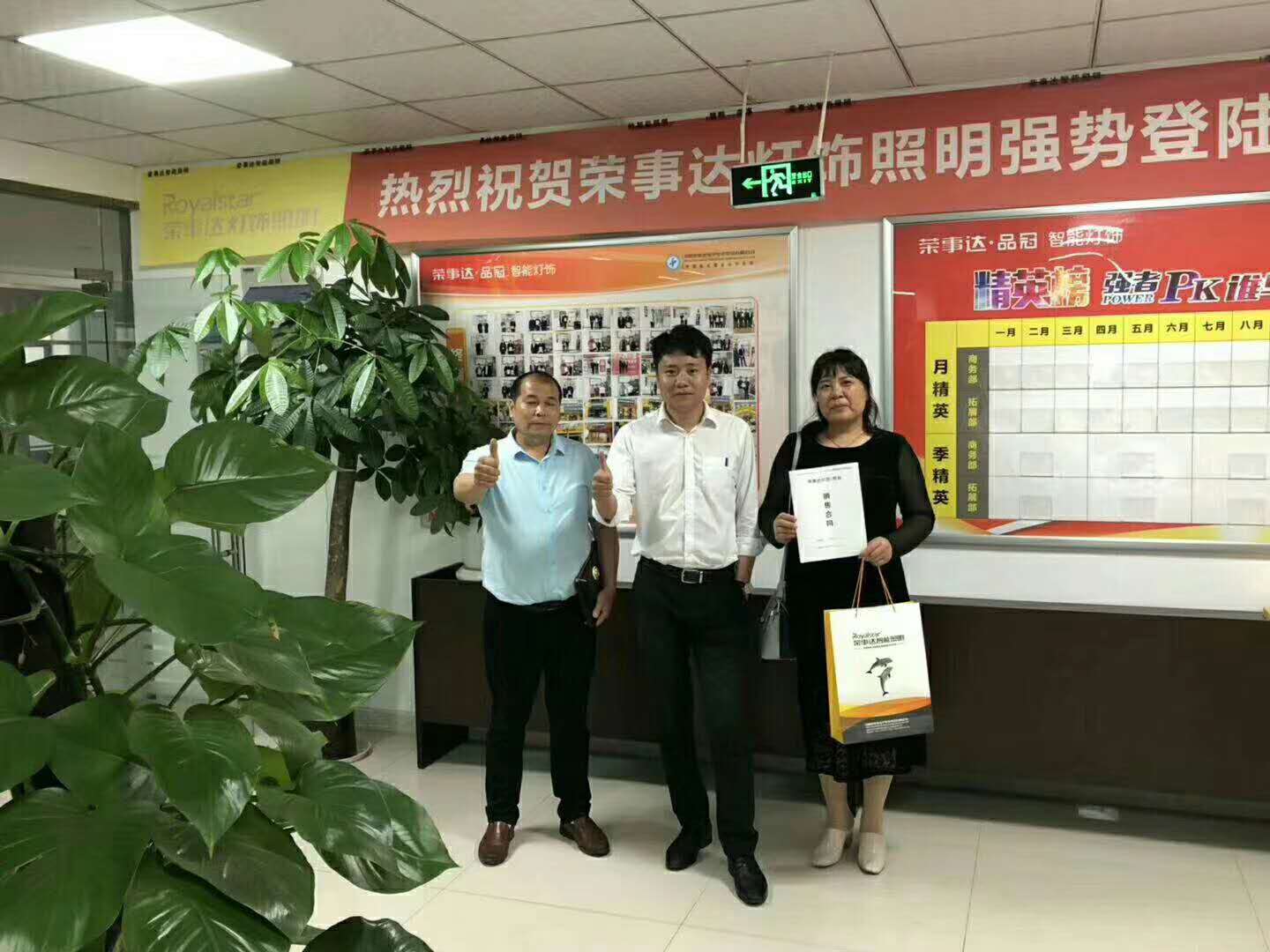 热烈祝贺陈总签约荣事达灯饰照明