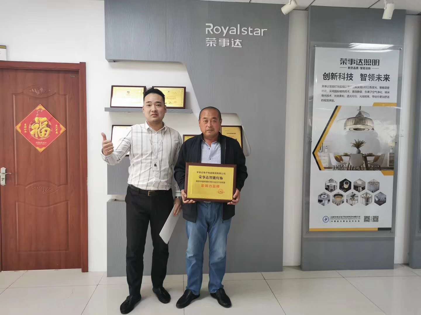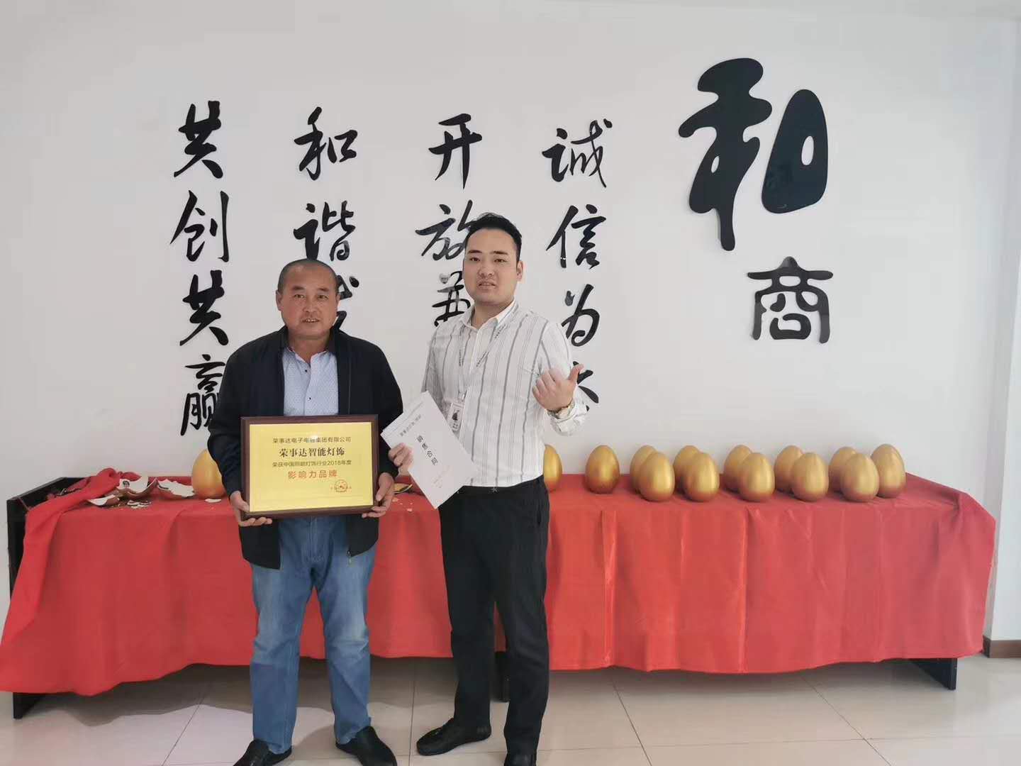 热烈祝贺胡总.袁总签约荣事达灯饰照明