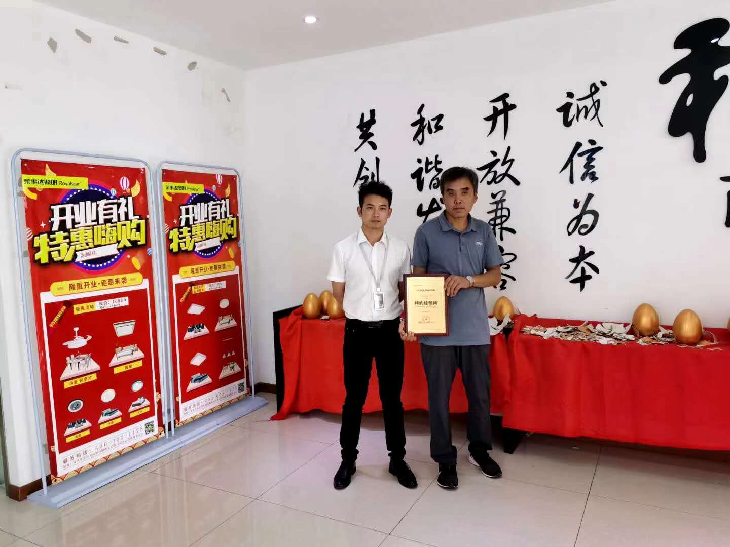 热烈祝贺彭总签约荣事达灯饰照明