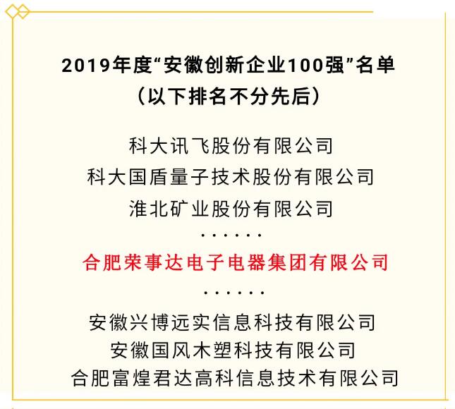 荣事达电子电器集团荣登安徽创新企业100强榜单