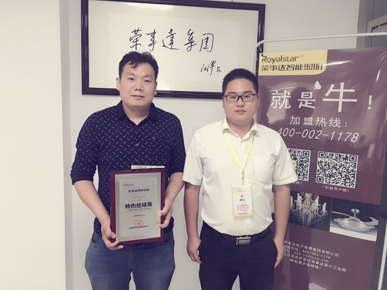 热烈祝贺薛总签约荣事达灯饰照明