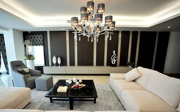 客厅一般选择看起华丽富贵的吊灯为佳,如果整体的家居风格是偏重欧式的,就最好选择水晶类灯饰,用璀璨耀眼的灯饰烘托出富丽堂皇的奢华感觉。如果家居风格是侧重古典,就应该选择风格大气简洁并精致素雅的灯饰,以达到家居风格的良好统