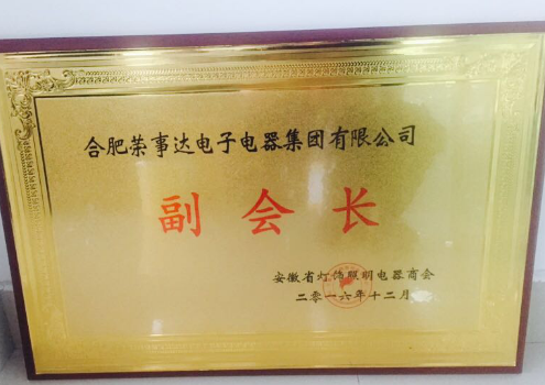 荣事达智能照明以企业雄厚实力获得了“安徽省灯饰照明电器商会——副会长”荣誉称号.
