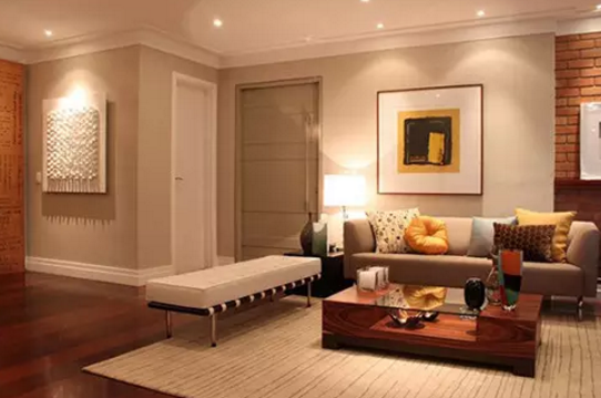 客厅兼具家人聊天、看电视、玩游戏、会客等用途,照明方案应该具有可调性,通过改变照明组合、灯光亮度打造相应的氛围。目前市面上可以调节灯光亮度的光源主要有普通白炽灯、可调光LED灯泡/灯带,搭配调光开关,就可以在不同时刻调整到适宜的亮度。