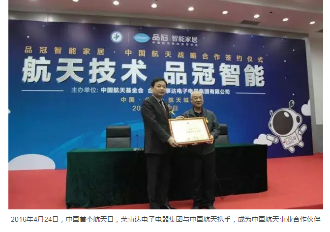 未来,荣事达将与中国航天事业开启更深入的合作阶段,更深层次地加强军民融合,让航天科技通过荣事达品牌更好地服务消费者,用切实行动履行企业社会责任。用全球最优质的资源、最严格的标准不断打造世界级的中国品牌,让每一位中国消费者都能享用到航天品质的智能家居,这标志着助力中国航天事业的荣事达,全面进入了升级“航天品质”的发展新阶段。