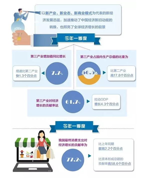 “不过,夜间灯光亮度与经济发展水平的关联度也受人口密度等因素影响。例如,一些地方虽然经济发达,但人口密度比较低,夜间灯光亮度就会受影响。从这个意义上说,夜间灯光亮度只是观察经济的辅助性指标之一。”刘学智说。国家统计局的数据显示,今年一季度,第三产业增加值同比增长7.7%,增速比第二产业快1.3个百分点,占国内生产总值的比重为56.5%,比第二产业高17.8个百分点。第三产业对经济增长的贡献率达61.7%,拉动GDP增长4.3个百分点。