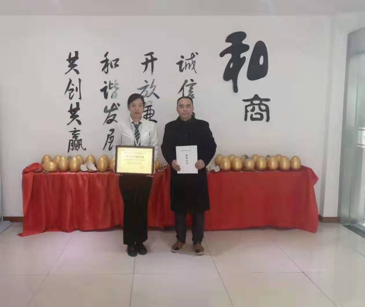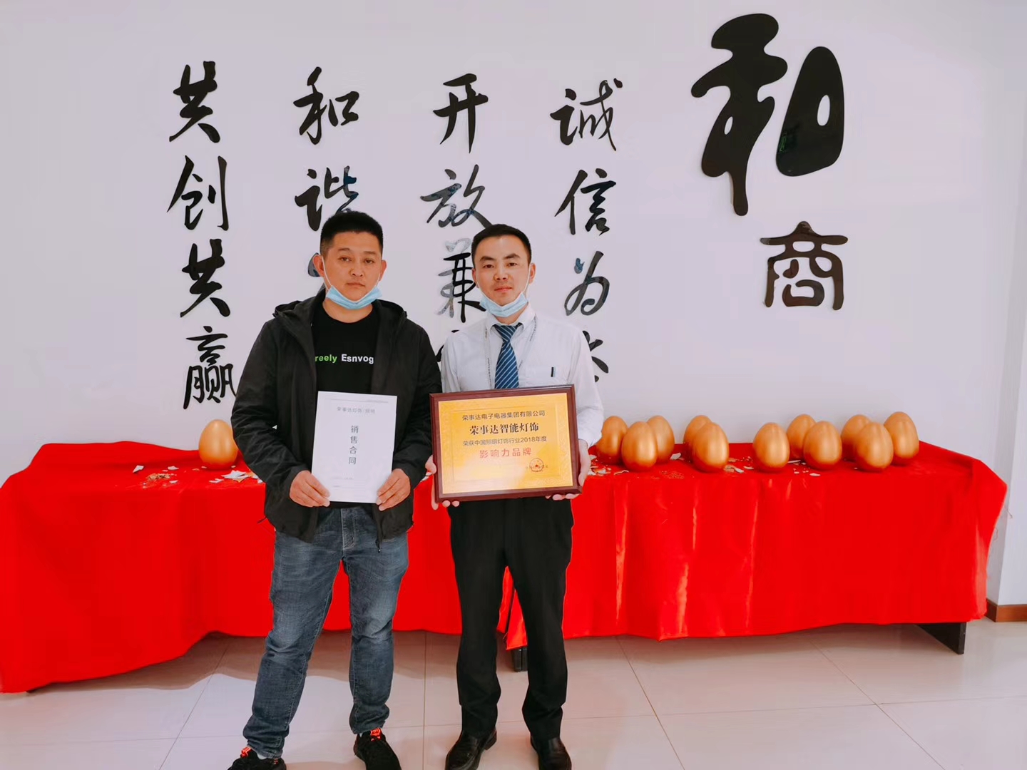 热烈祝贺杨总和姜总签约荣事达灯饰照明