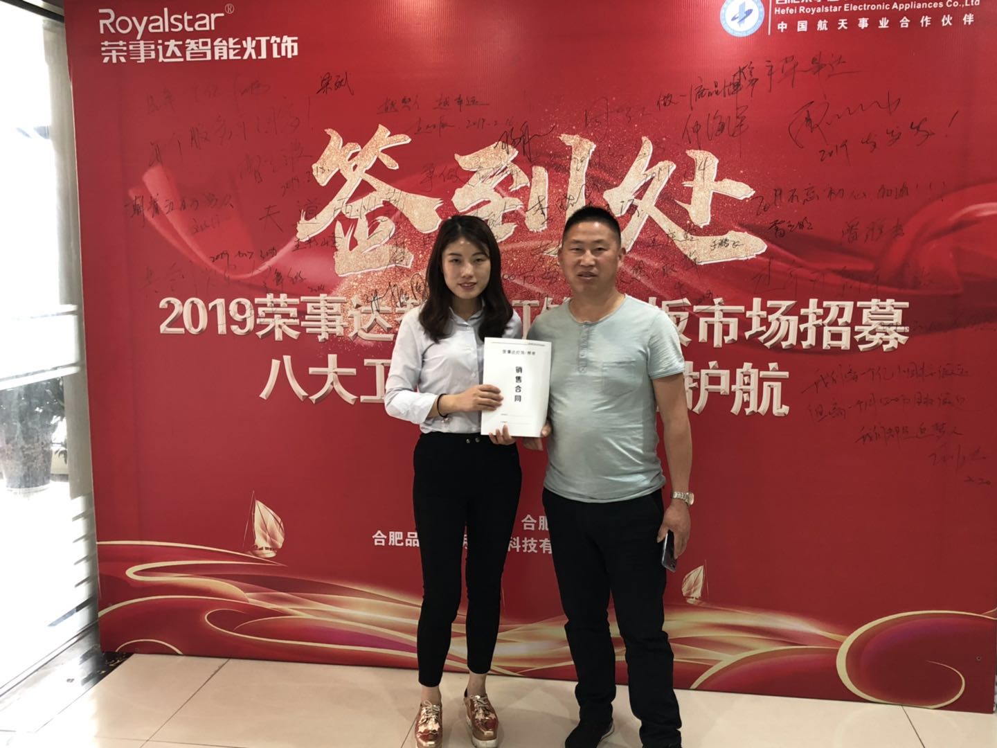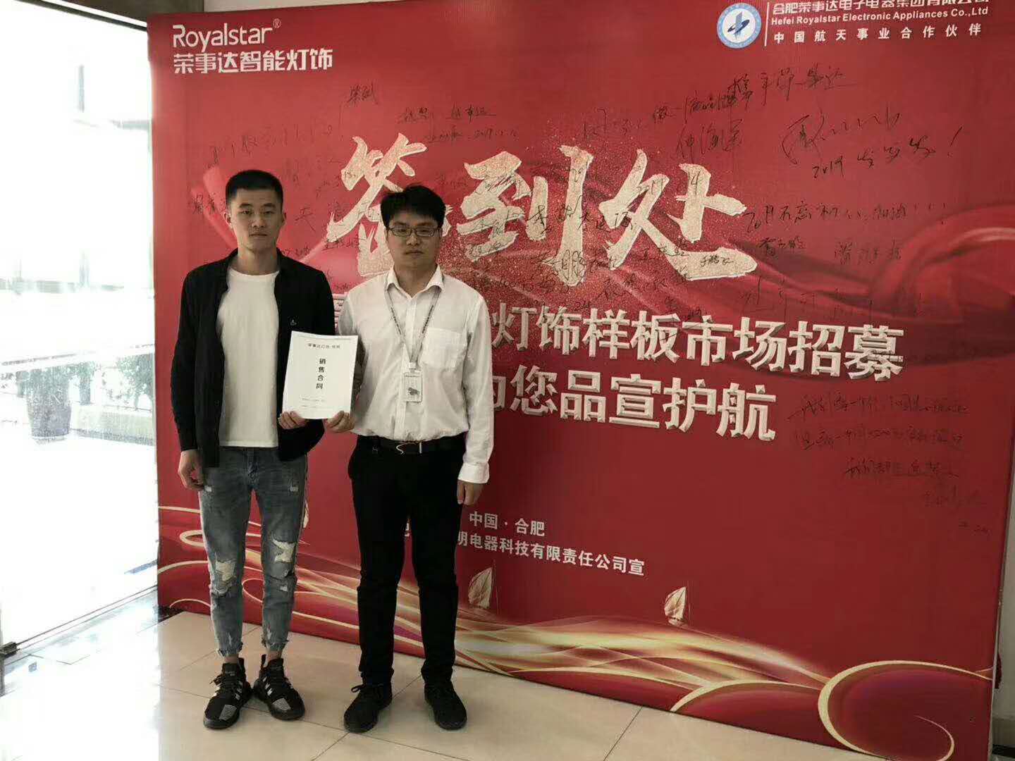 热烈祝贺刘总签约荣事达灯饰照明
