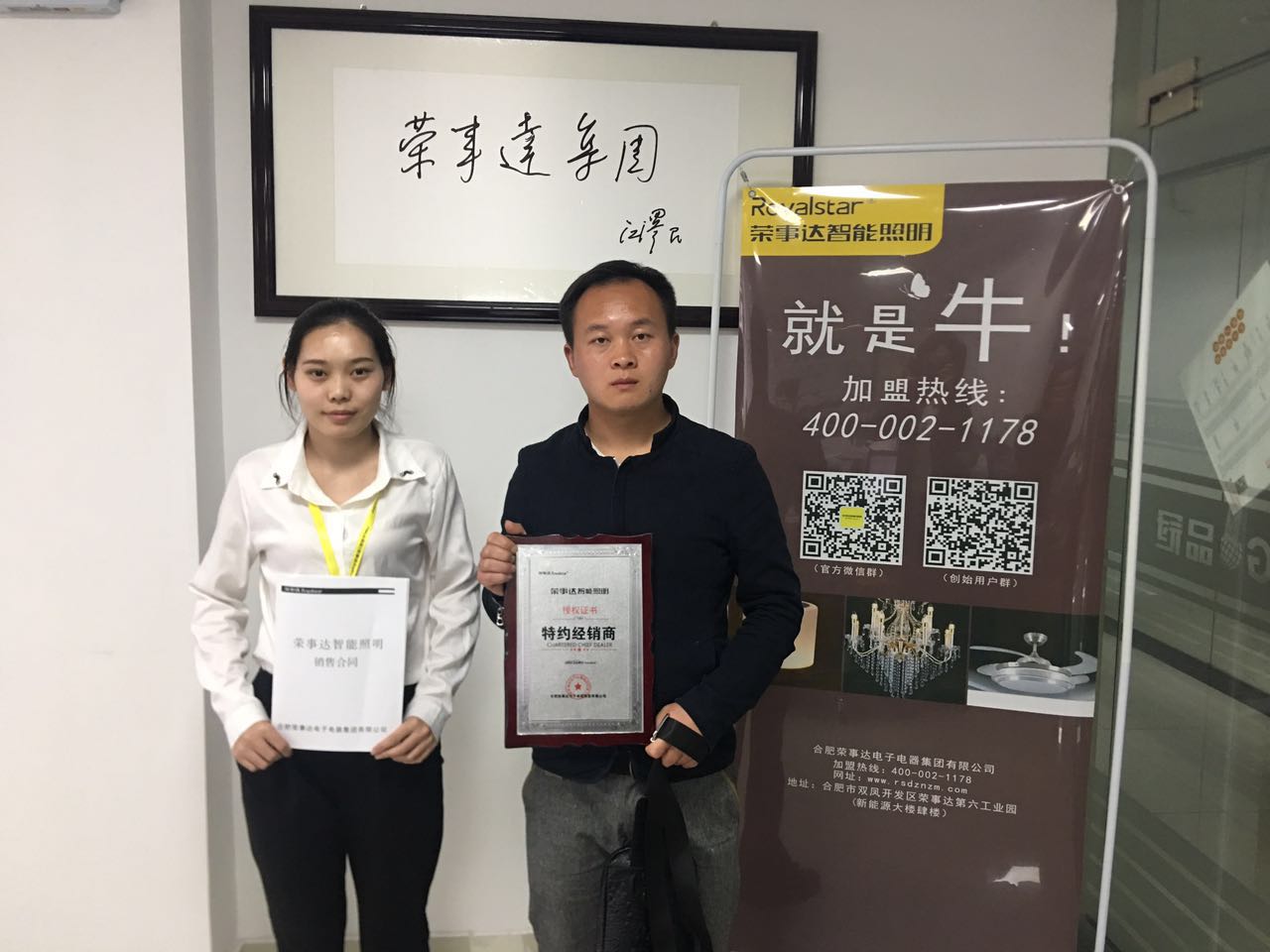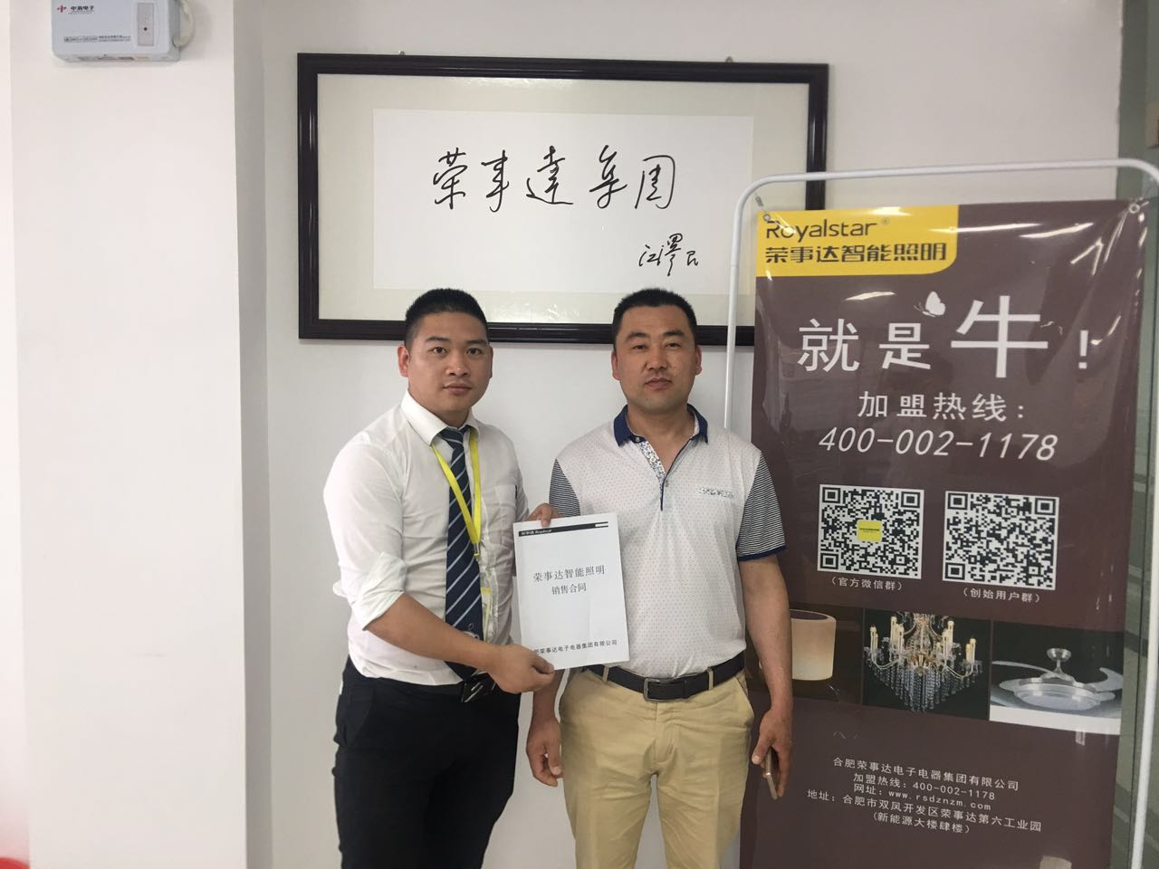 热烈祝贺程总签约荣事达智能照明